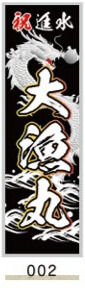 下記の情報をご注文の際にお伺いいたします。 ・デザイン番号((例)001) ・今回制作する旗に記載したい船名(大漁丸など)やお名前、送り主様指名(贈 田中染工場など ) ・文字の書体(イメージやフォントなど) ・その他 ご希望の文字入れなど